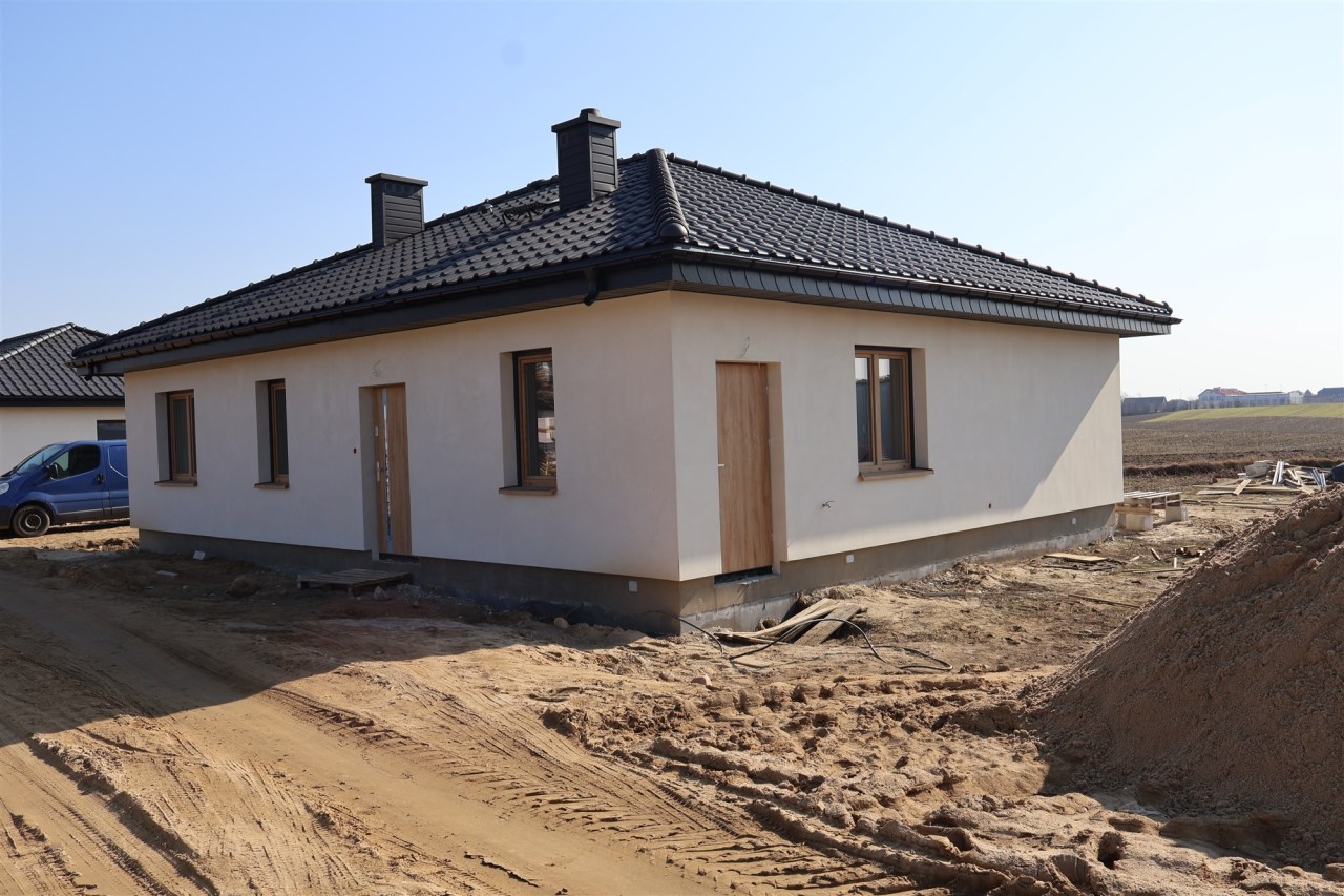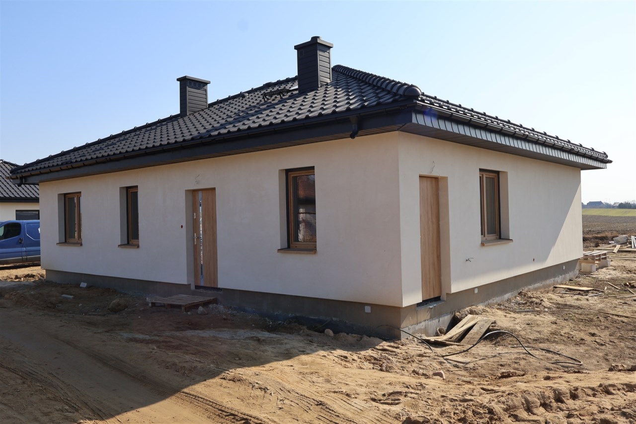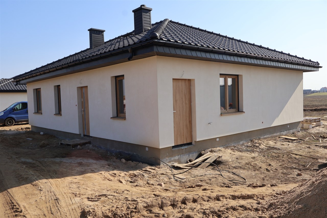 Zdjęcia przedstawiają budynek według tego samego projektu wybudowany w innej lokalizacji oraz aktualne zaawansowanie budowy. Istnieje możliwość dostosowania domu do własnych potrzeb nowego właściciela.