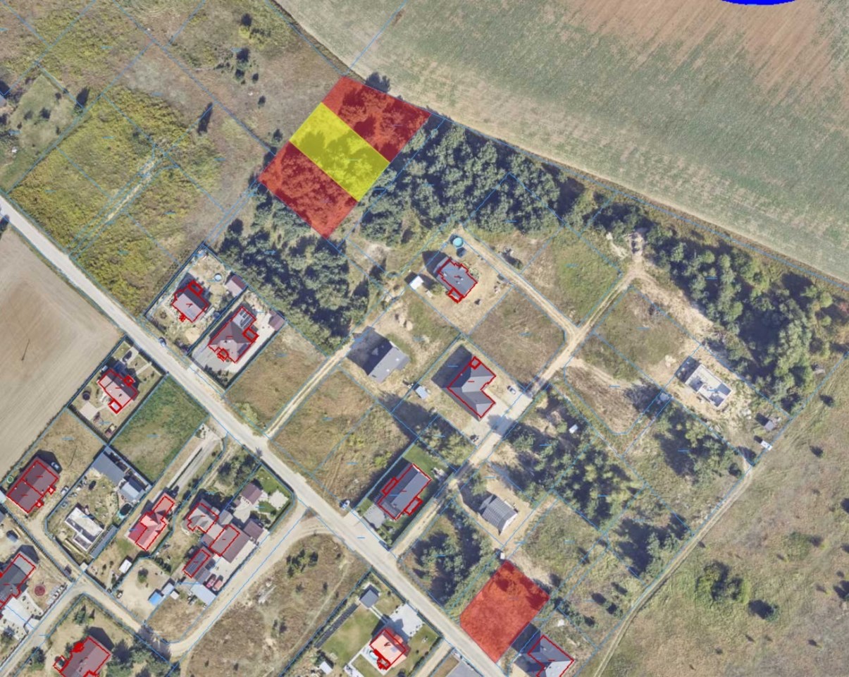 dom nr 1 – działka o powierzchni 882 m², położona bezpośrednio przy drodze asfaltowej, teren równy – cena 529 000 zł