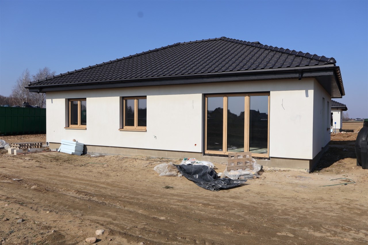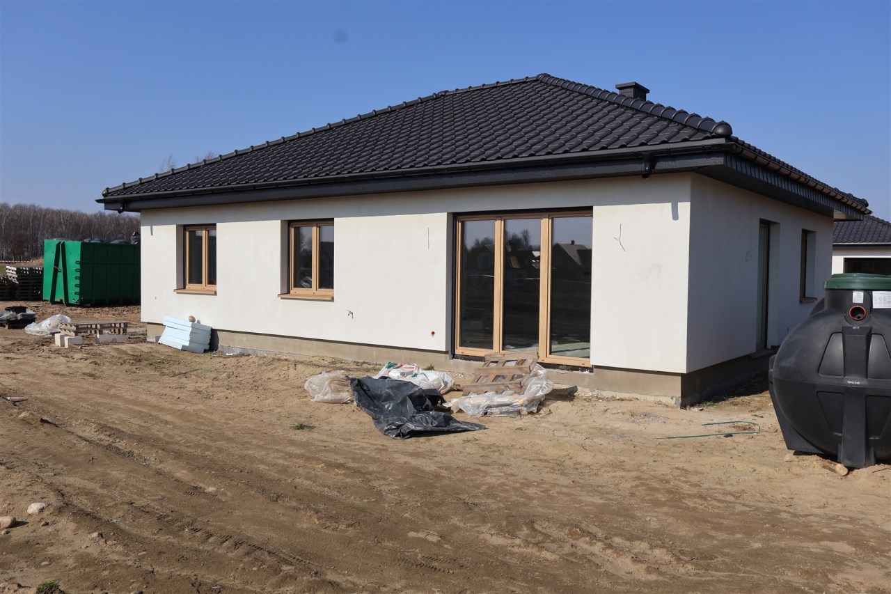 Zdjęcia przedstawiają budynek według tego samego projektu wybudowany w innej lokalizacji oraz aktualne zaawansowanie budowy. Istnieje możliwość dostosowania domu do własnych potrzeb nowego właściciela.